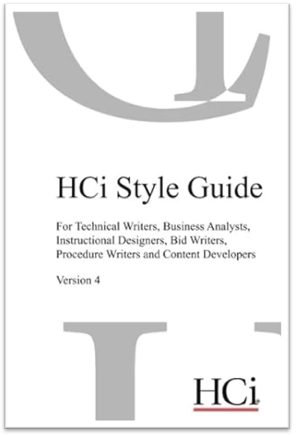 Version 4 of the HCi Style Guide is available only in printed form. Rewritten completely in 2017/18 it contains advice for Technical Writers, Business Analysts, Instructional Designers, Bid Writers, Procedure Writers and Content Developers.